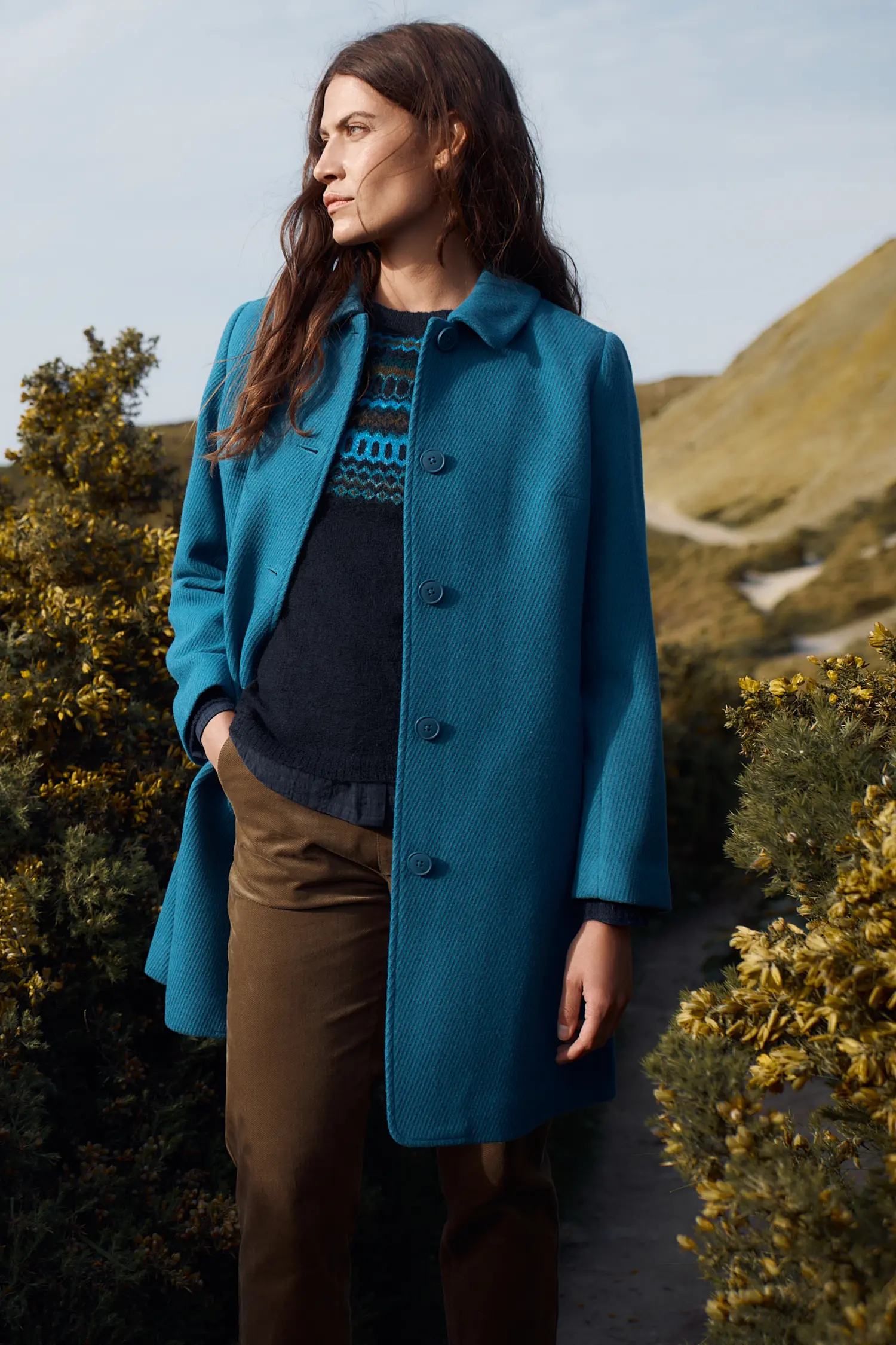 A warm, wool-rich coat that’s perfect for autumn, with subtle shades of colour in the fabric.