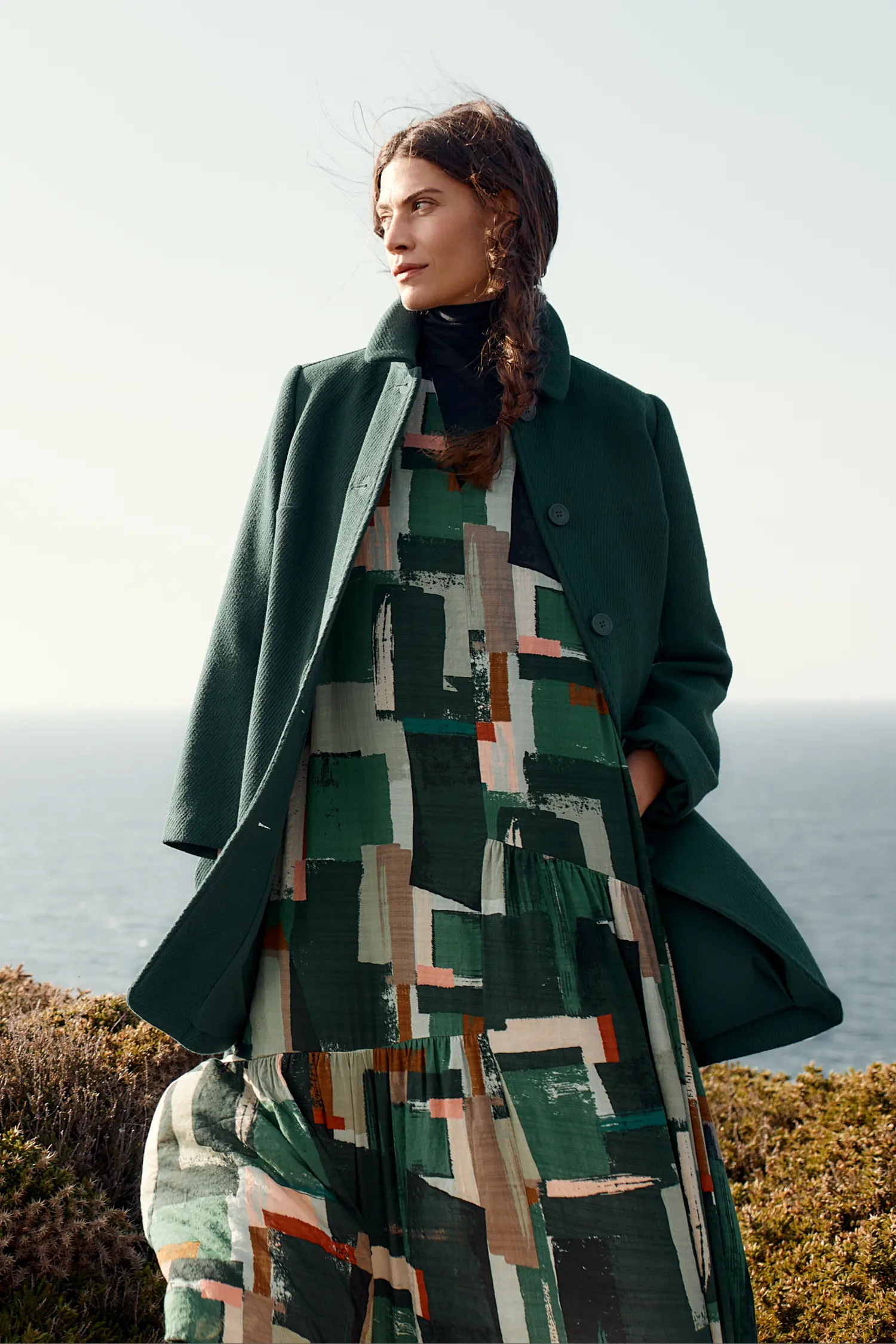 A warm, wool-rich coat that’s perfect for autumn, with subtle shades of colour in the fabric.