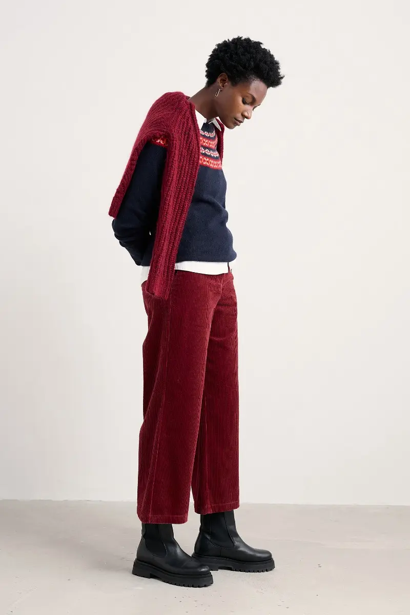 Our Asphodel Trousers are made from soft & chunky Seasalt cord. They sit just below the natural waist and have a cropped wide leg shape
