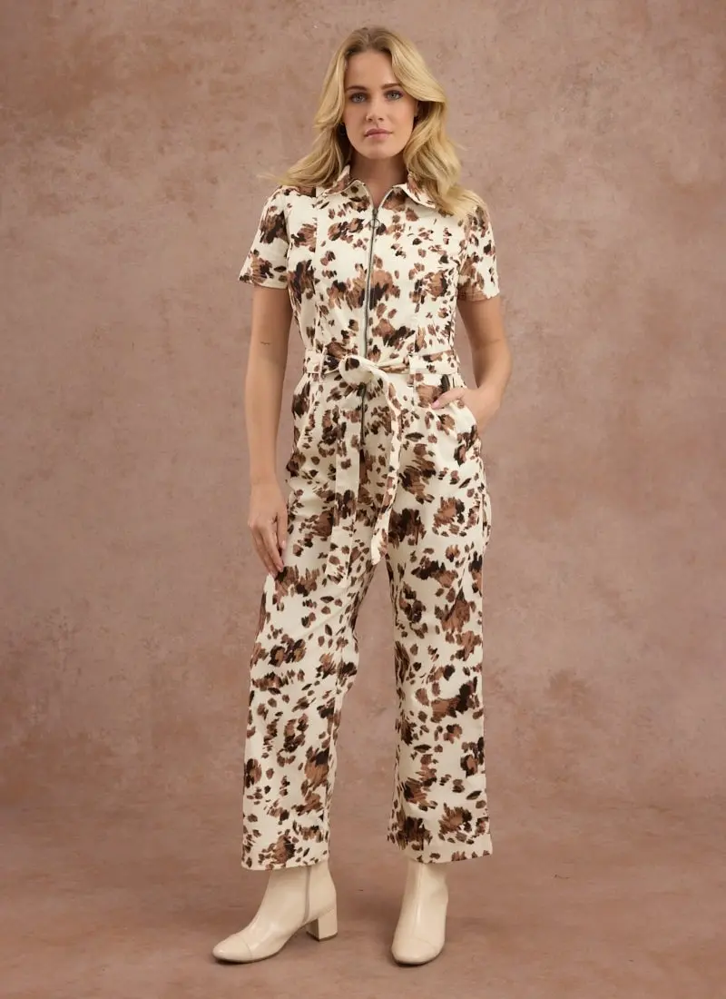 Joanie Clothing Mork Cow Print Short Sleeve Boilersuit