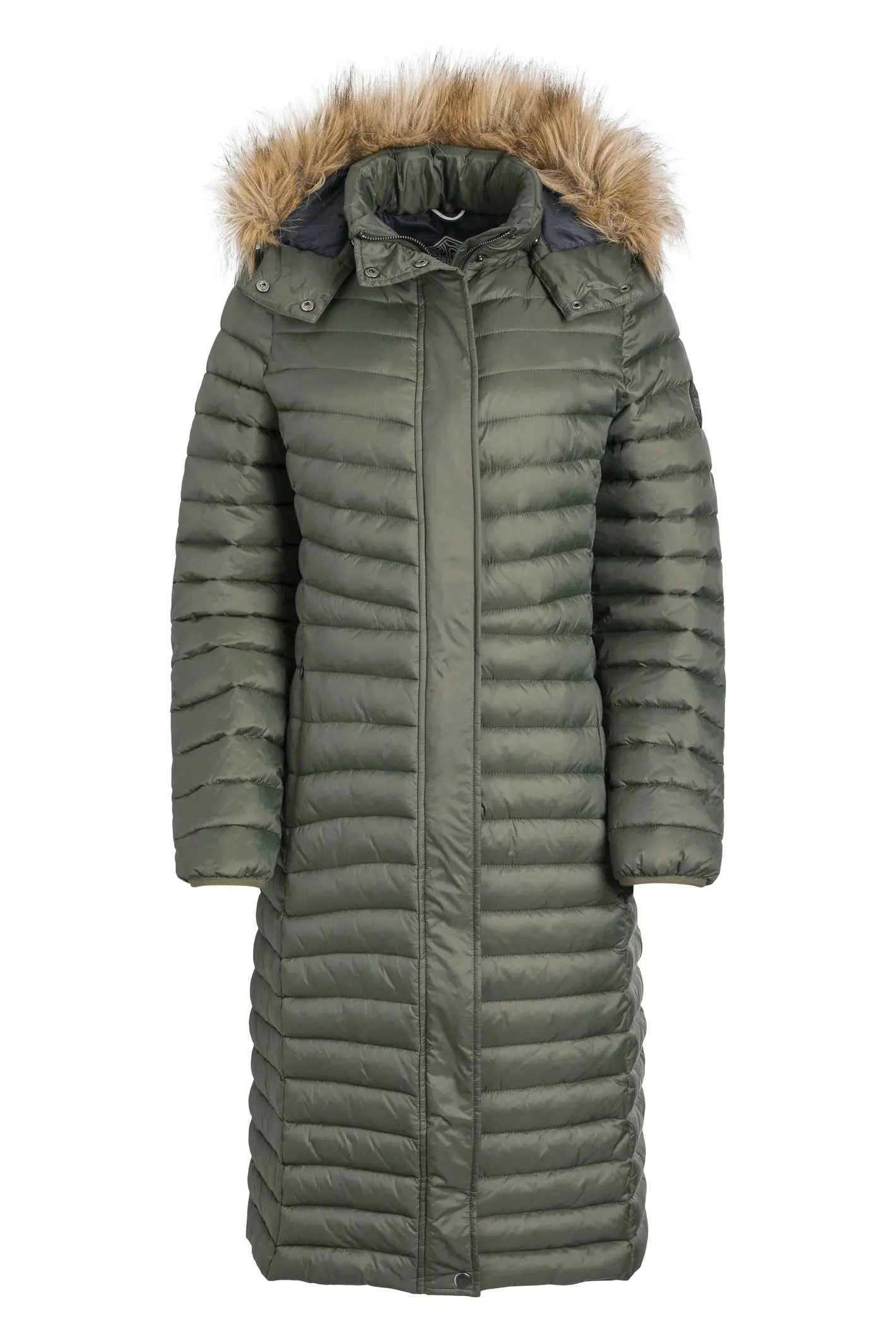 Ideal for Autumn the Kempley Lightweight Padded Midline Hooded Jacket is longer for extra warmth and is lightly wadded so it packs a warm punch without the weight. The faux fur-trimmed hood can be removed and is attached with poppers. The internal lining is a contrasting colour and we have added a double-ended zip for ease and flexibility. Complete with hand zipped pockets and elasticated cuffs.Our models are between 5ft 8" and 5ft 10" and all wear a size 10Removable popper fastened hood with faux fur trimContrast colour lining and silicone arm brandingLightly wadded with elasticated cuffsDouble ended zipZip up with popper fastened storm flapZipped hand pockets100% Polyamide30° Machine Wash