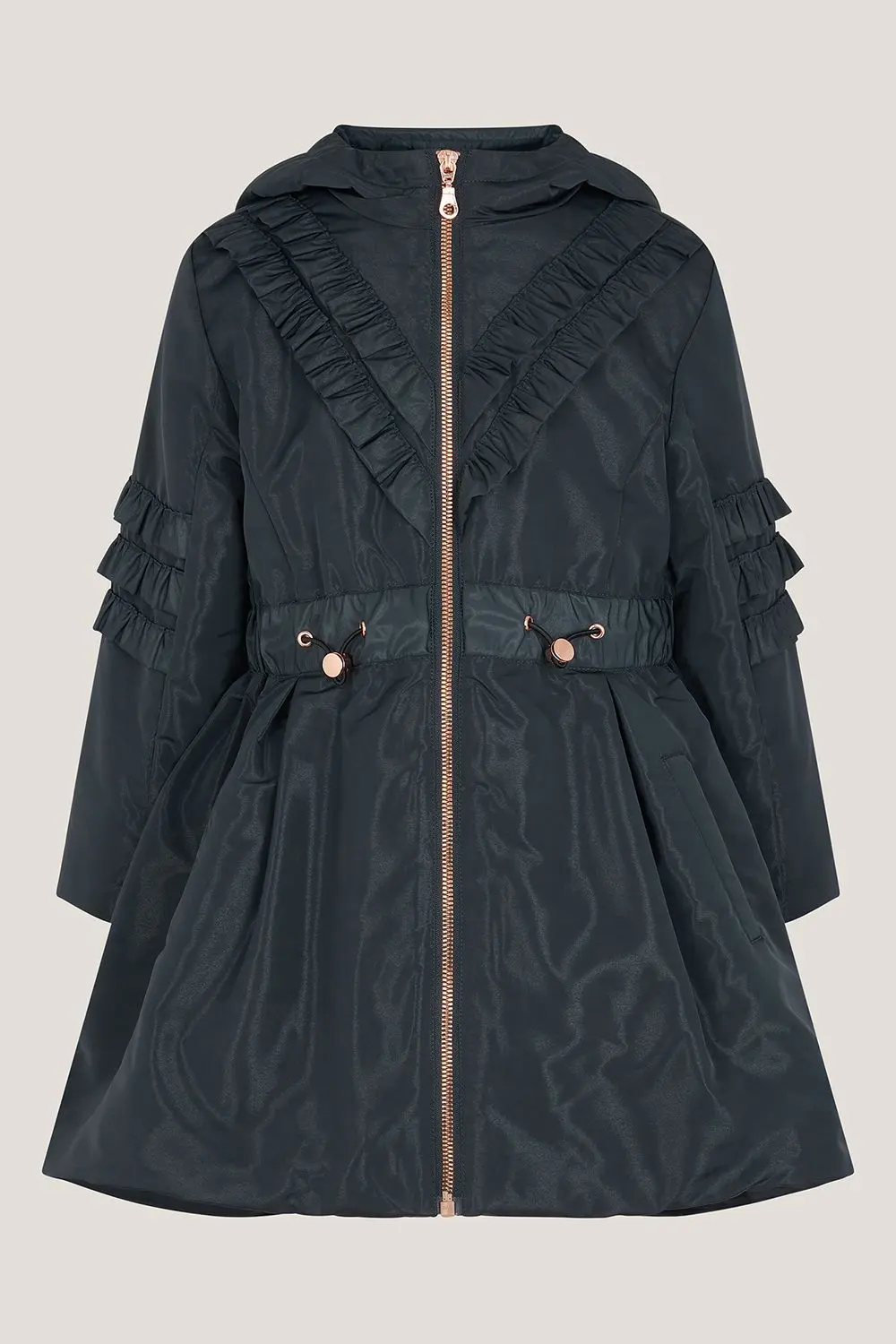 Monsoon Girl's Lightweight Frill Raincoat in Blue