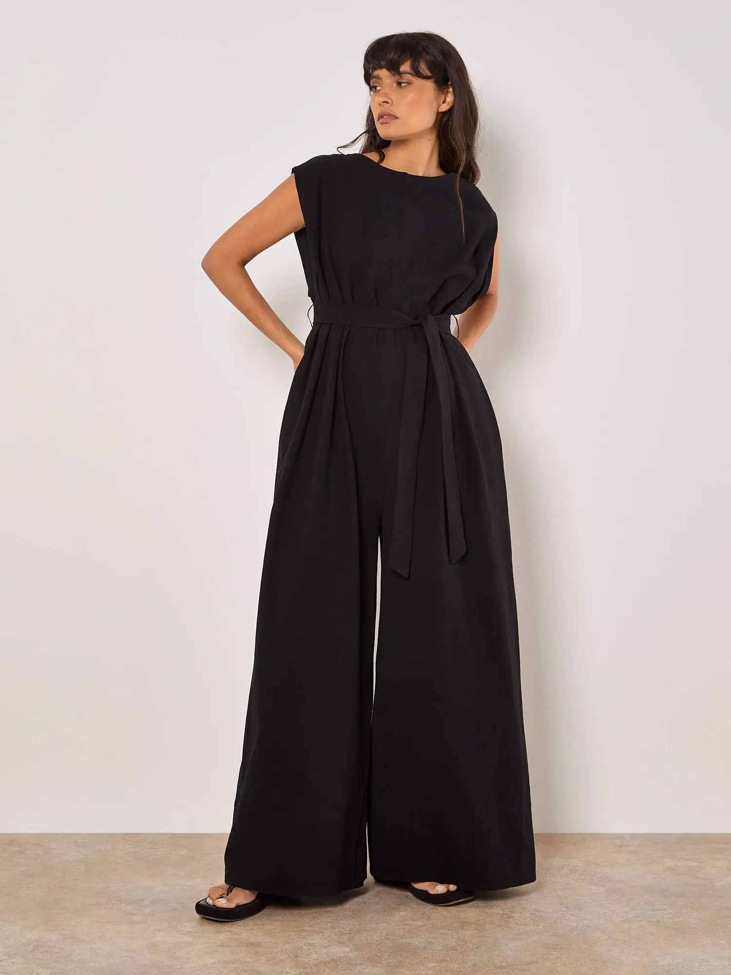Apricot Women's Wide Leg Cotton Jumpsuit in Black