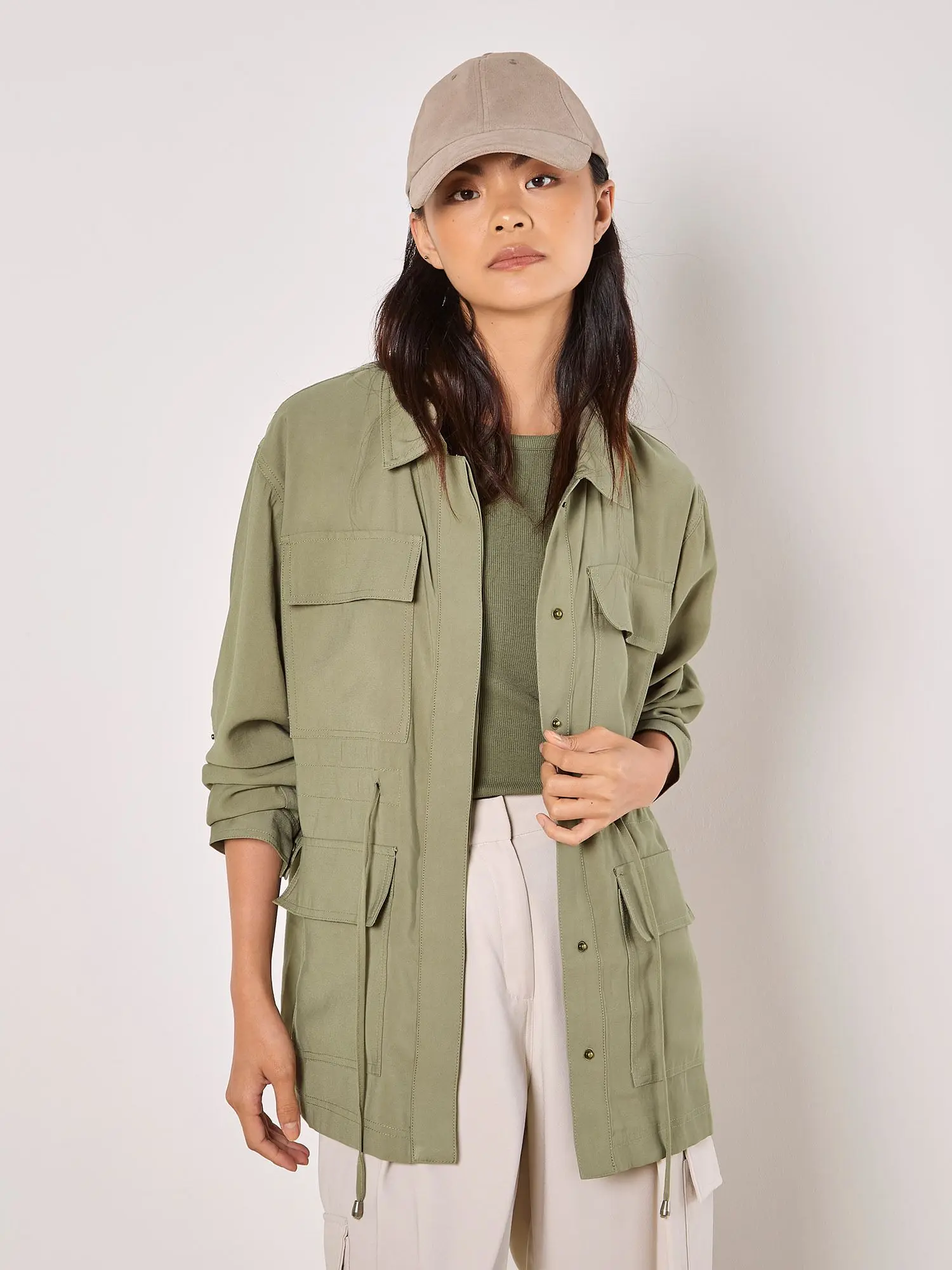 Apricot Women's Cargo Pocket Lightweight Jacket in Khaki