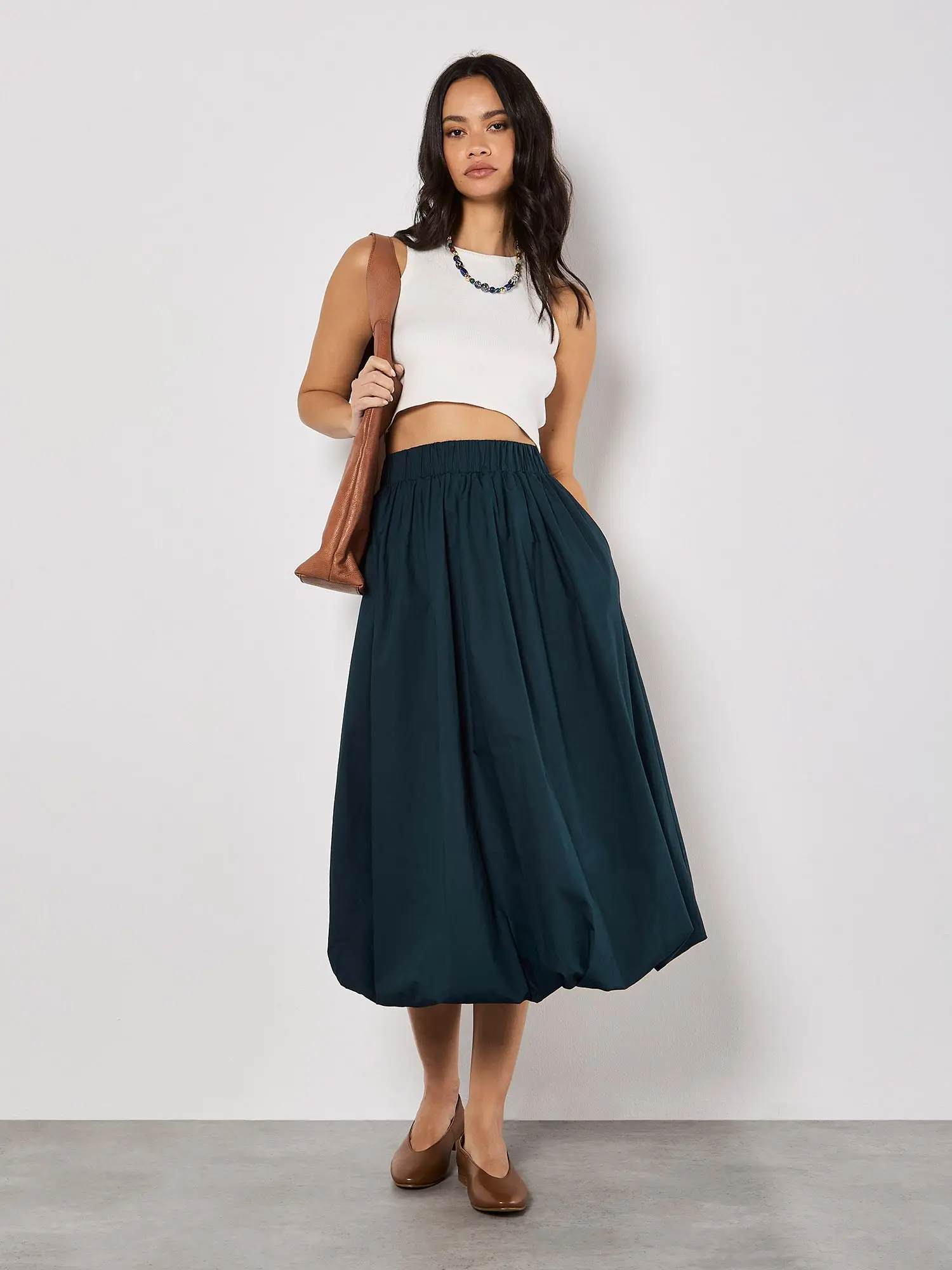 Apricot Women's Puff Hem Midi Skirt in Navy