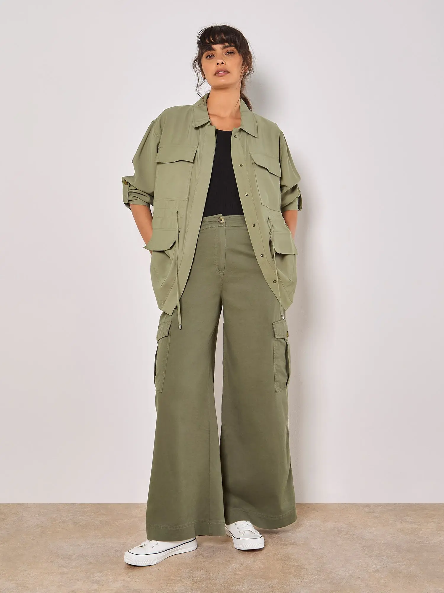 Apricot Women's Wide Leg Chino Trousers in Khaki