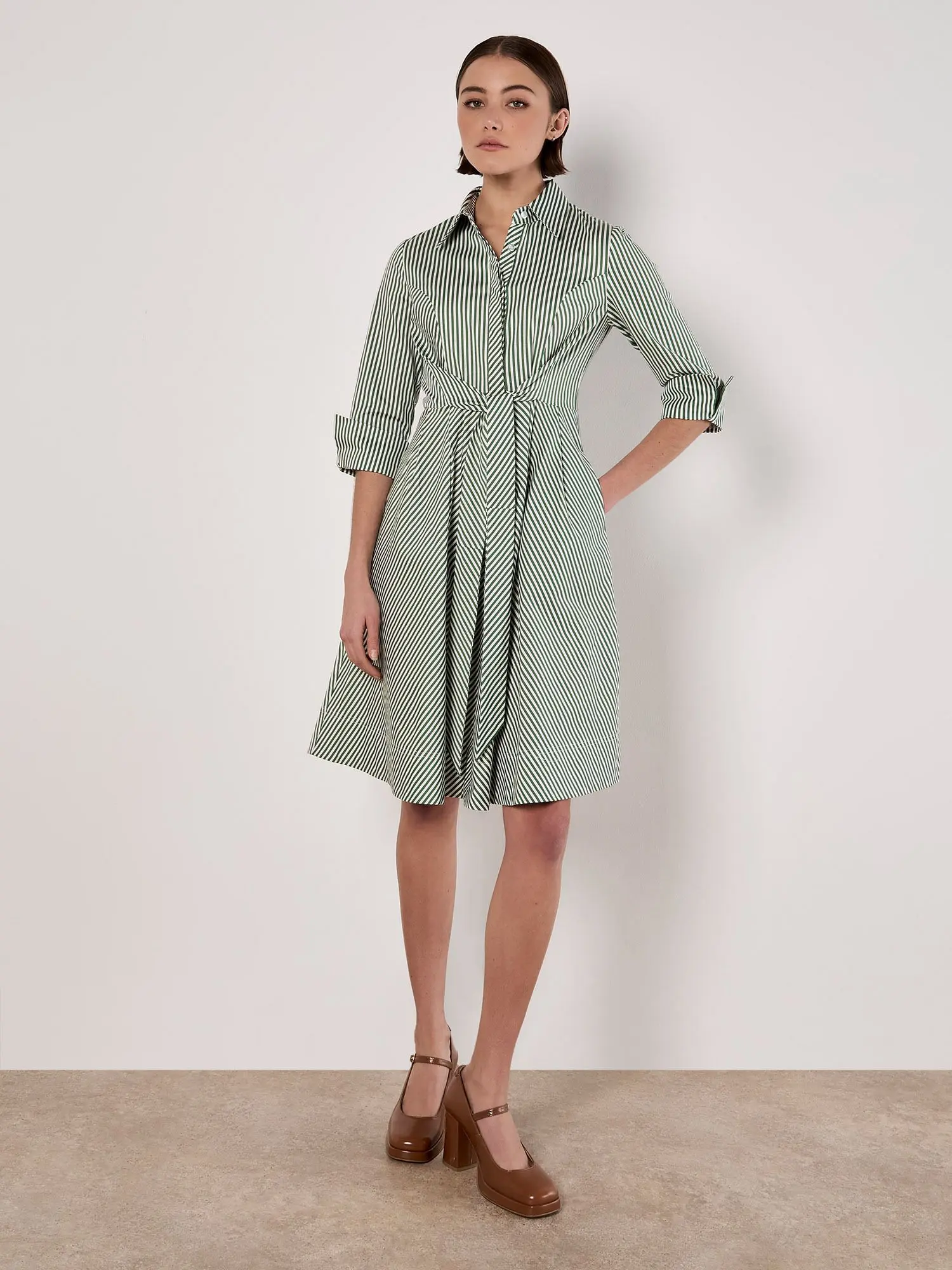 Apricot Women's Cotton Stripe Shirt Mini Dress in Green