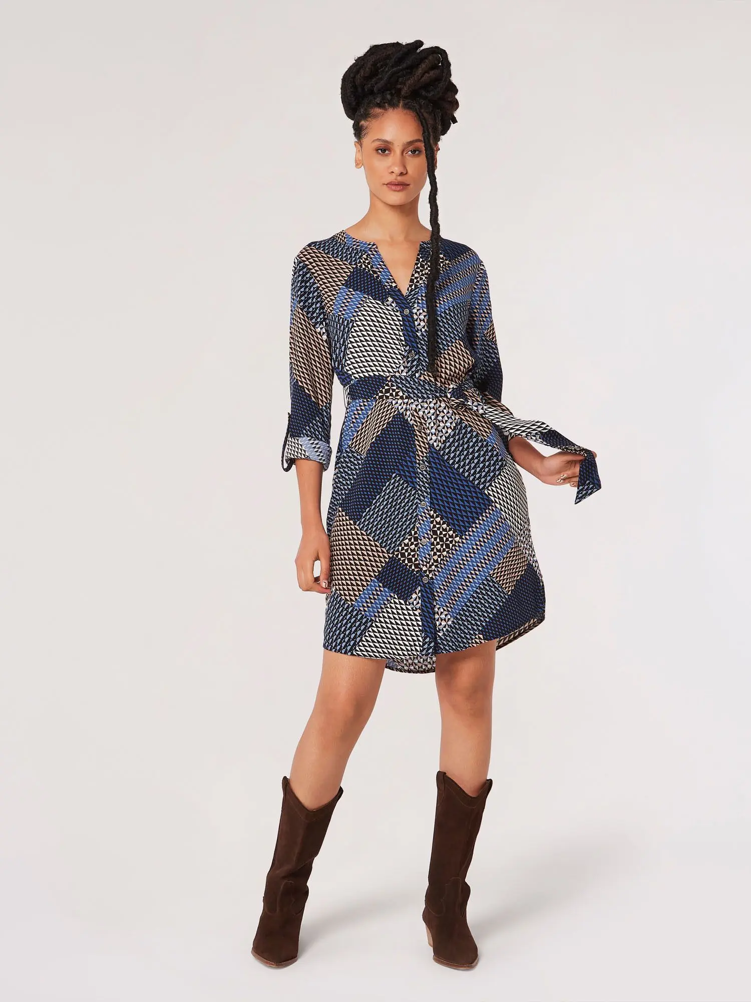 Refresh your wardrobe to include statement prints with this striking mini dress. Decorated with a geometric patchwork pattern, this shirt dress boasts a notched V-neckline, a button-through front and a fabric belt to create a flattering fit. It's finished with practical side seam pockets.