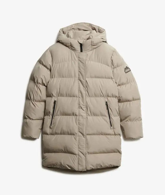 Superdry Women's Hooded Sports Puffer Mid Length Jacket Beige / Winter Twig Beige -
