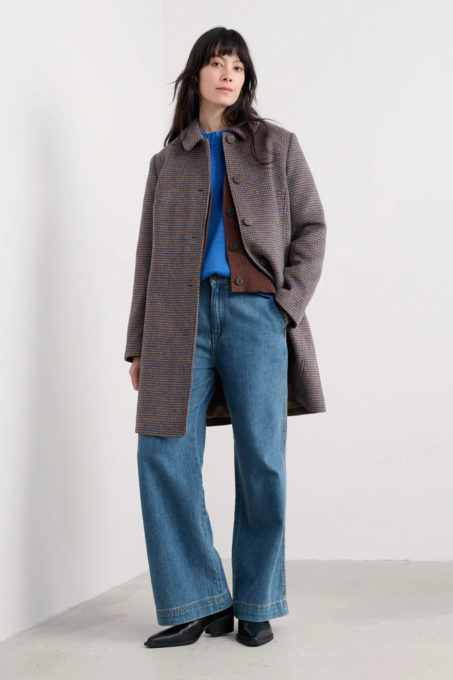 A warm, wool-rich coat that’s perfect for autumn, with subtle shades of colour in the fabric.