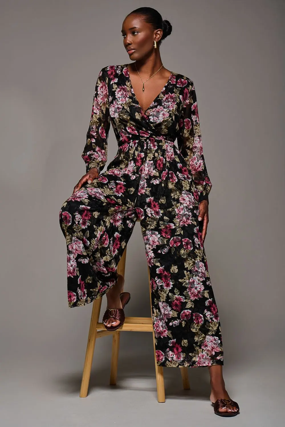Wrap Tie Waist Jumpsuit by Jolie Moi combines elegance and practicality. Its wrap-front design and self-tie belt create a flattering silhouette, while long sleeves with cuffed button closures add a refined touch. This design is complete with two pockets.