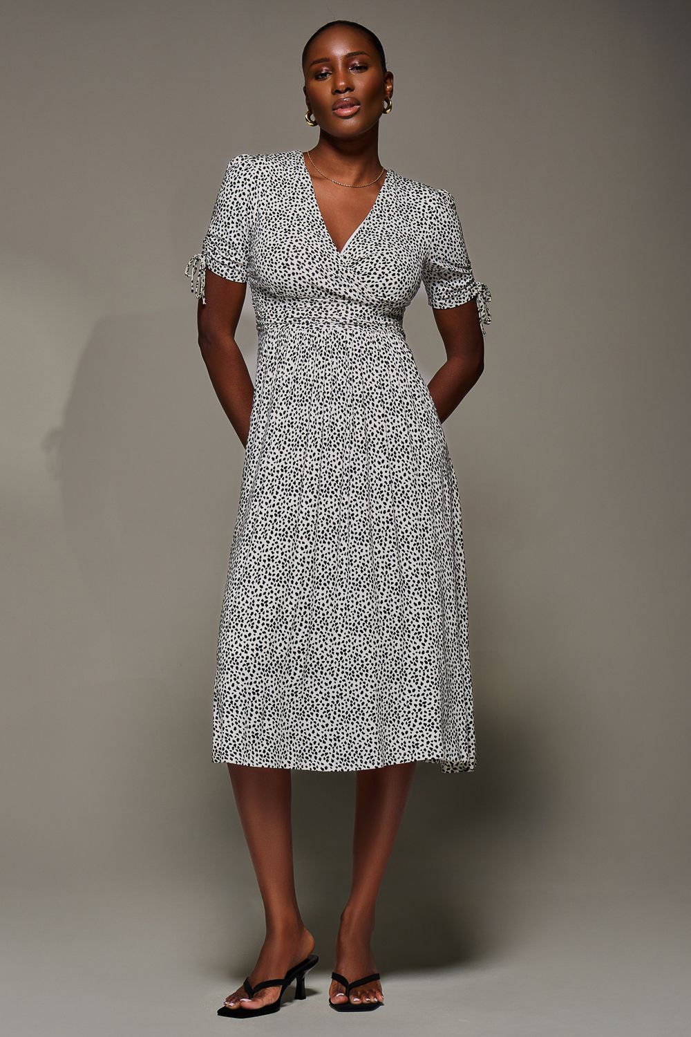 Jolie Moi Women's Jersey Tie Sleeve Wrap Front Midi Dress in White