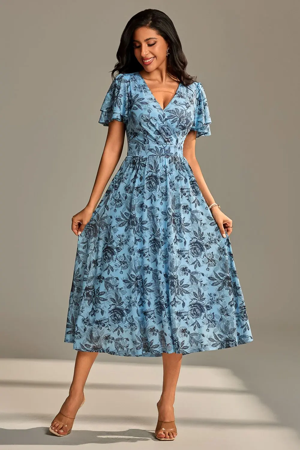 Effortlessly elegant, the Flutter Sleeve Mesh Maxi Dress by Jolie Moi is designed to flatter and flow. Draped in a striking abstract print over lightweight mesh, its faux wrap V-neckline softly frames your dcolletage, while layered angel sleeves flutter with ethereal charm. Finished with a stretchy waistband, to ensures a comfortable, flattering fit, and two discreet side pockets.