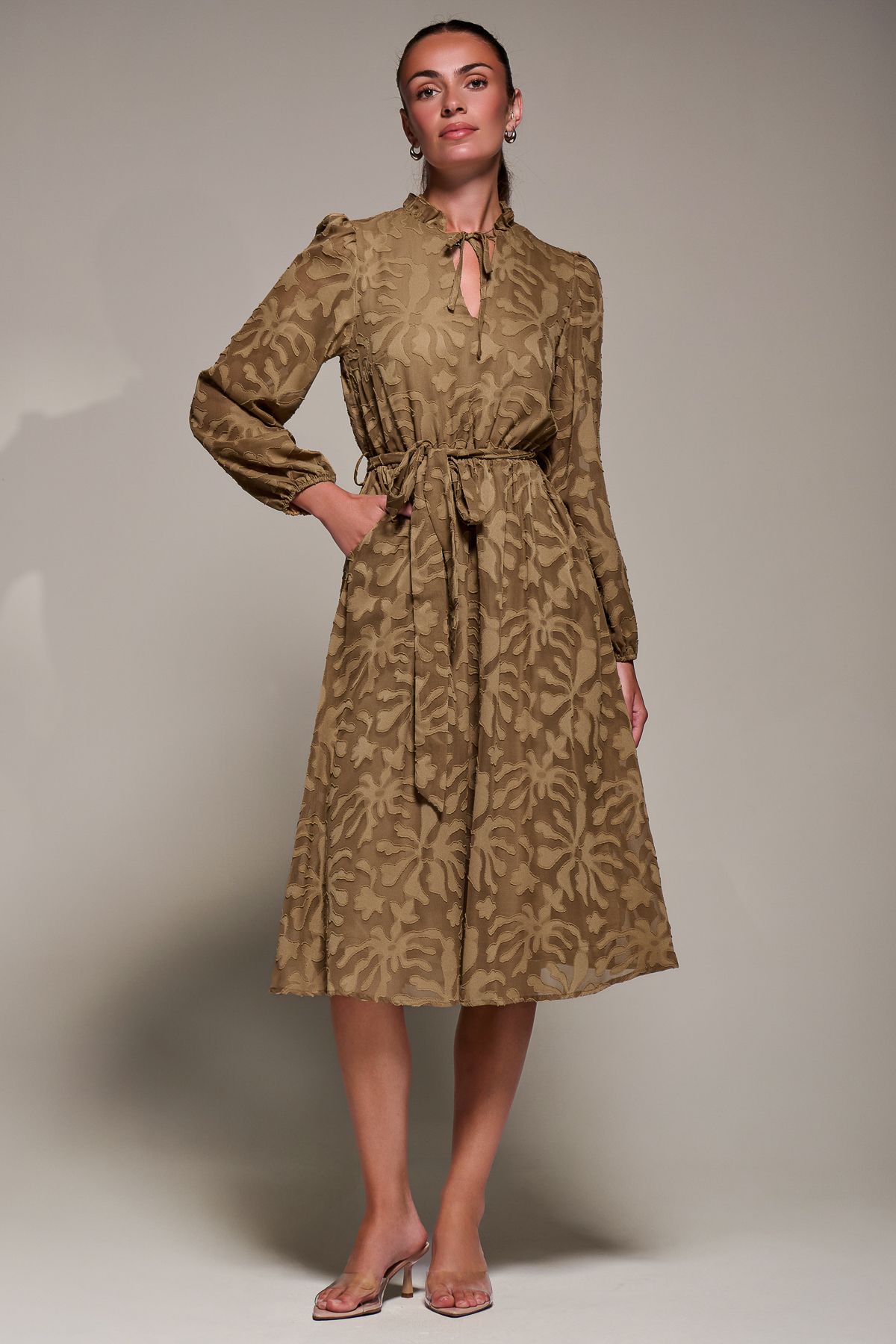 Jolie Moi Women's Tie Neck Chiffon Midi Dress in Brown