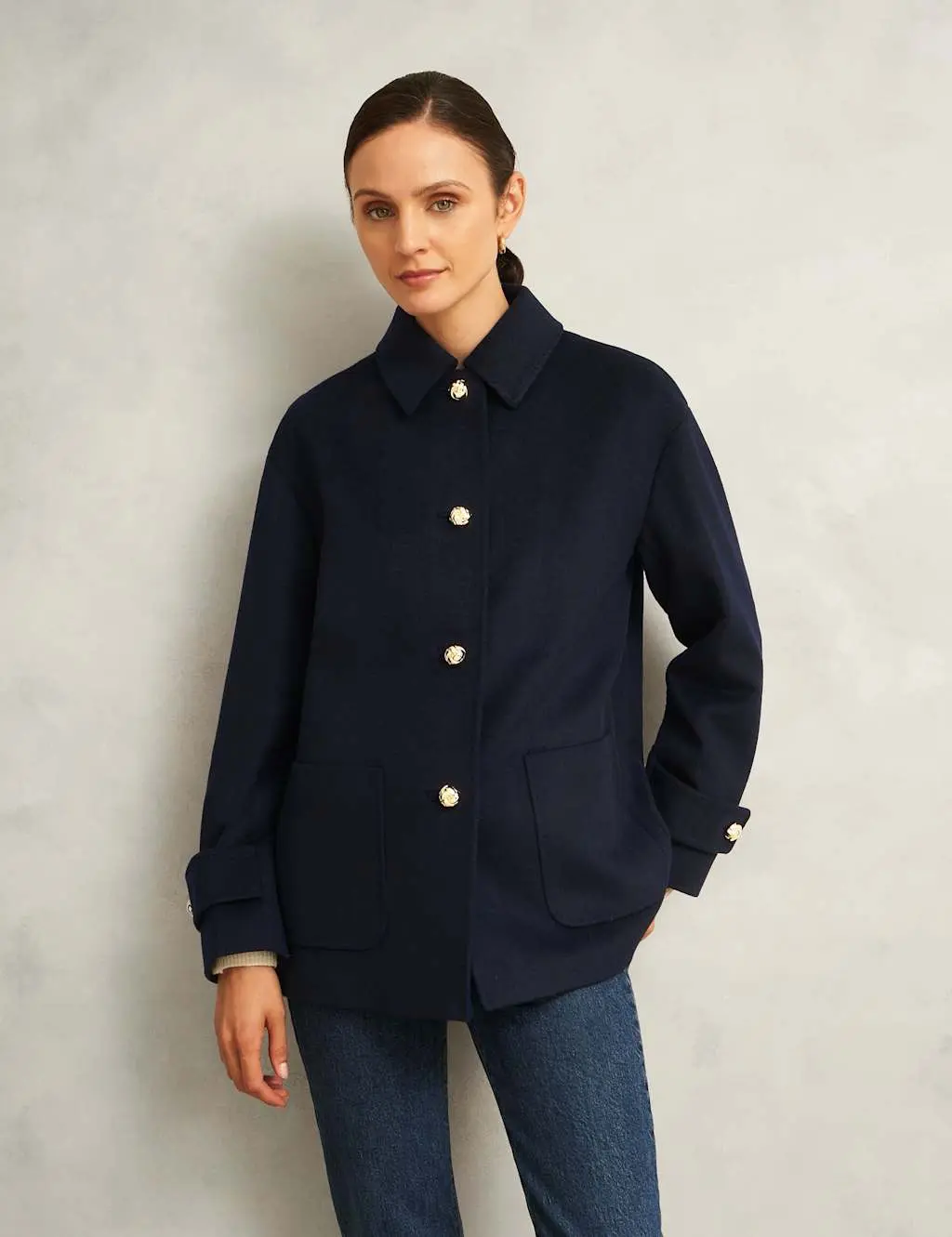This wool-rich coat from Hobbs is a smart choice for cooler days. It's designed in a regular fit, with a short length for a modern look. Gold-tone buttons feature on the cuffs and through the centre front, lending a luxe touch to the design. This piece is complete with a neat collar neckline and front patch pockets.