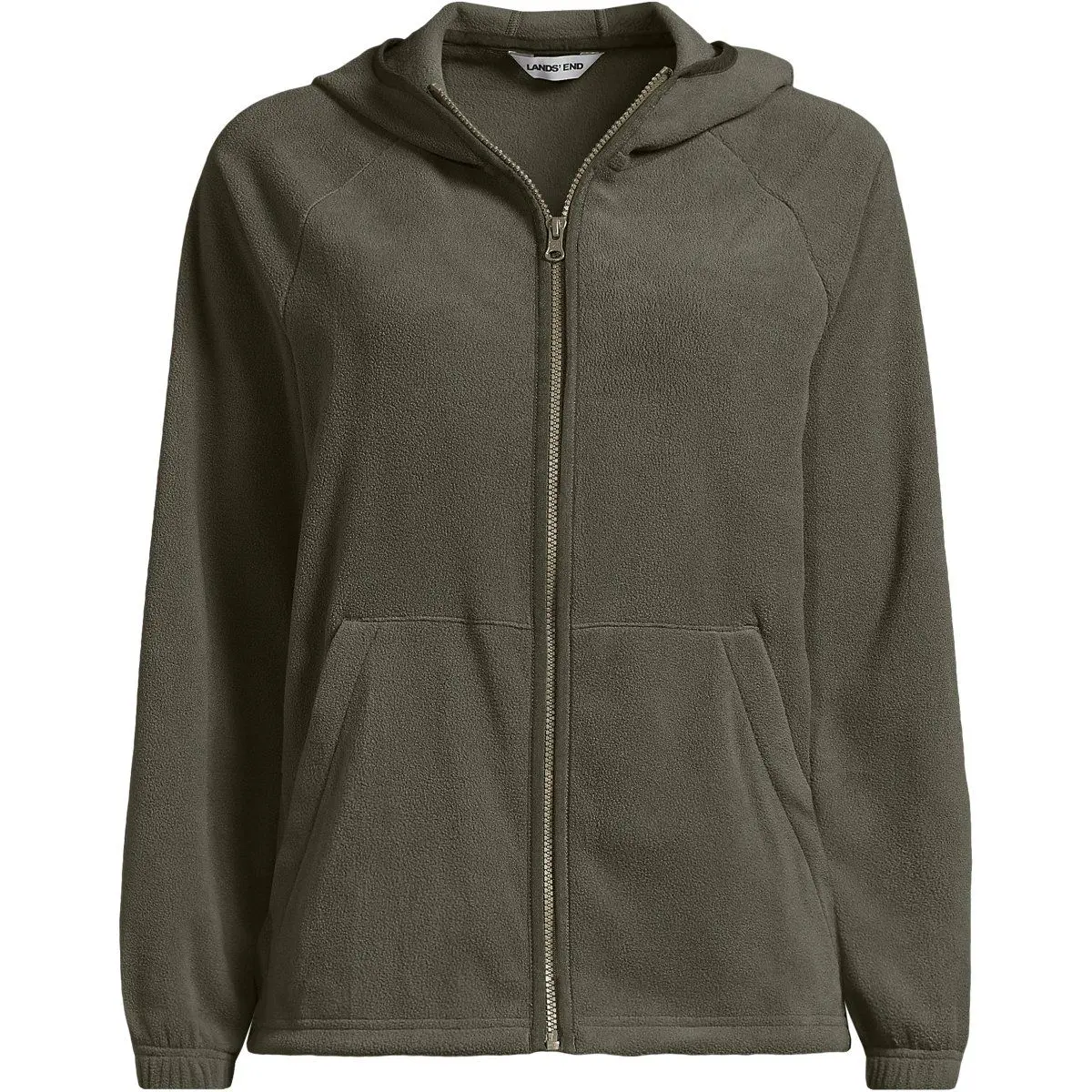 Lands' End Women's Anyweather Water Repellent Hooded Fleece Jacket in Dark Green