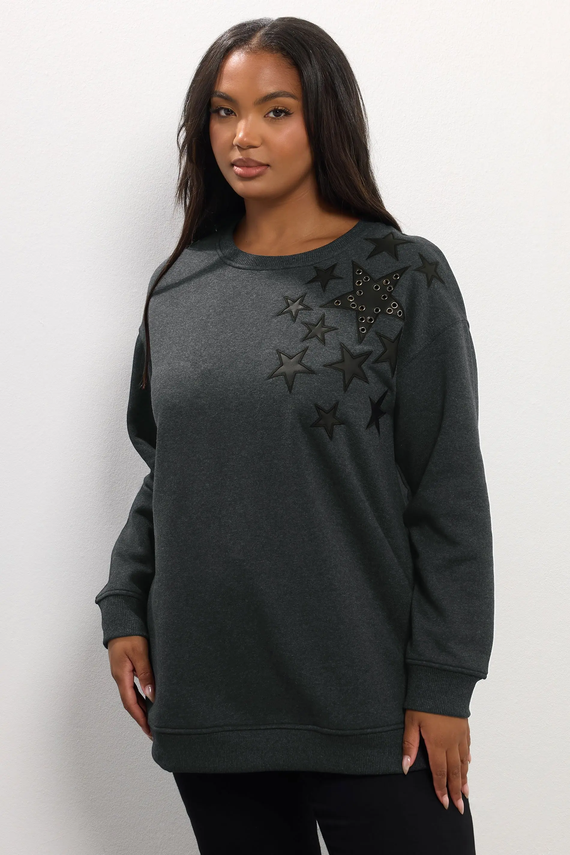 Yours Curve Grey Star Sweatshirt Dress, Women's Curve & Plus Size, Yours