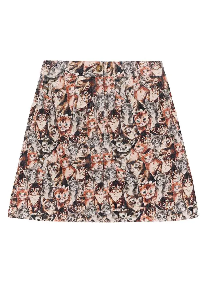 Joanie Clothing Scarlett Cat Tapestry Print Needlecord Skirt