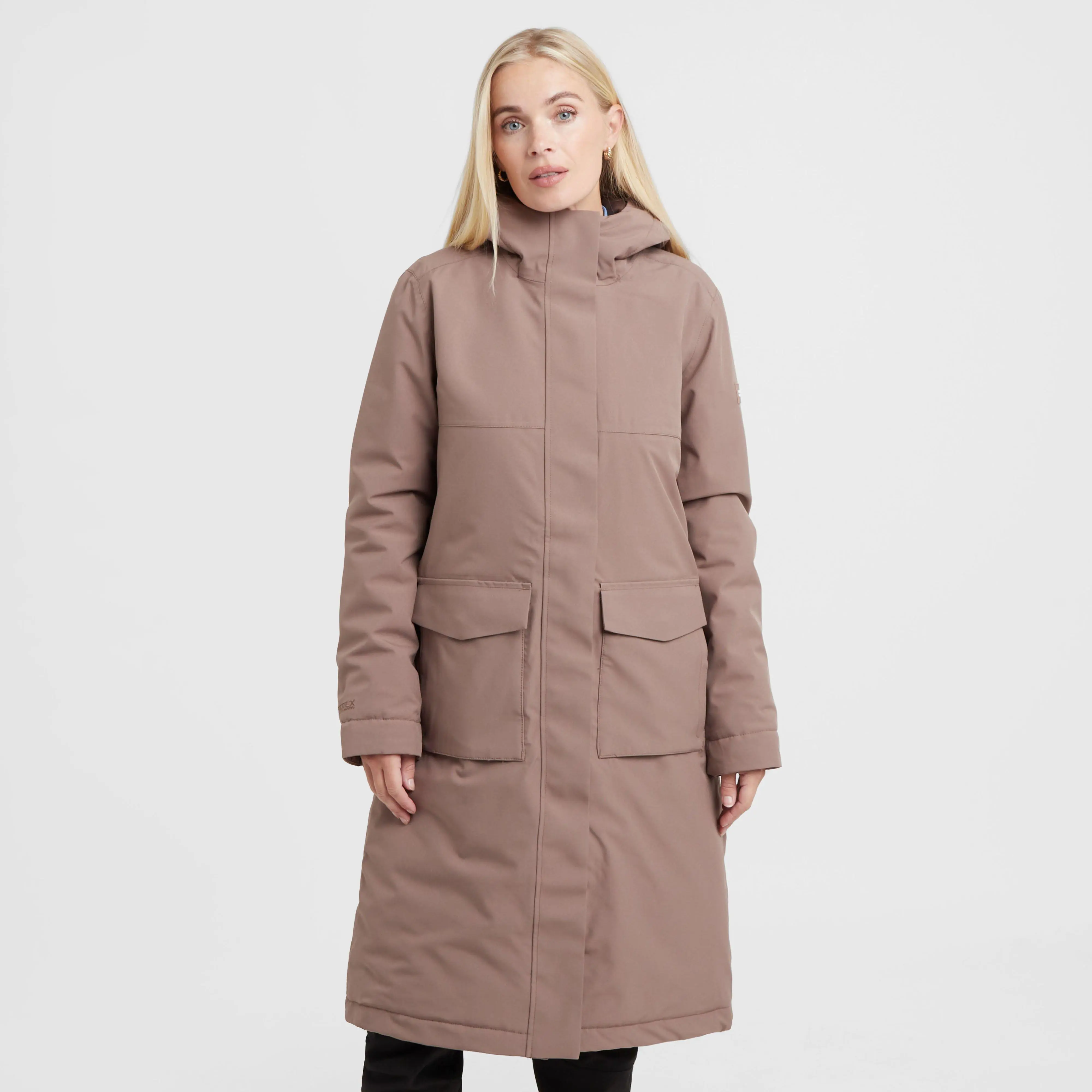 Perfect for soggy commutes, rainy dog walks, or braving the school run, this long length jacket is your shield against wet weather drama. Thanks to its Isotex 15000 fabric, the rain just rolls off, while a breathable construction prevents you from overheating. Inside, medium-weight Thermoguard insulation wraps you in cosy warmth, with a fleece-lined hood that feels like a hug for your head. A taffeta-lined interior makes this jacket as snazzy on the inside as it is on the outside. Warm, dry, and stylish, it's winter done right.Waterproof and breathable Isotex 15,000 recycled 100% polyester stretch fabricBreathability rating 10,000g/m²/24 hoursDurable water-repellent finishTaped seamsMedium Weight Recycled Thermoguard InsulationCosy fleece lining to upper body and hood100% polyester taffeta lining to lower bodyInternal security pocketGrown-on hood with concealed adjustersAdjustable shock-cord waist2 lower dual entry patch pocketsTechnologyIsotex Stretch: Waterproof, breathable and windproof stretch fabricThermoguard: Quick dry synthetic fibre insulation that traps airFabric100% PolyesterColour: Cream