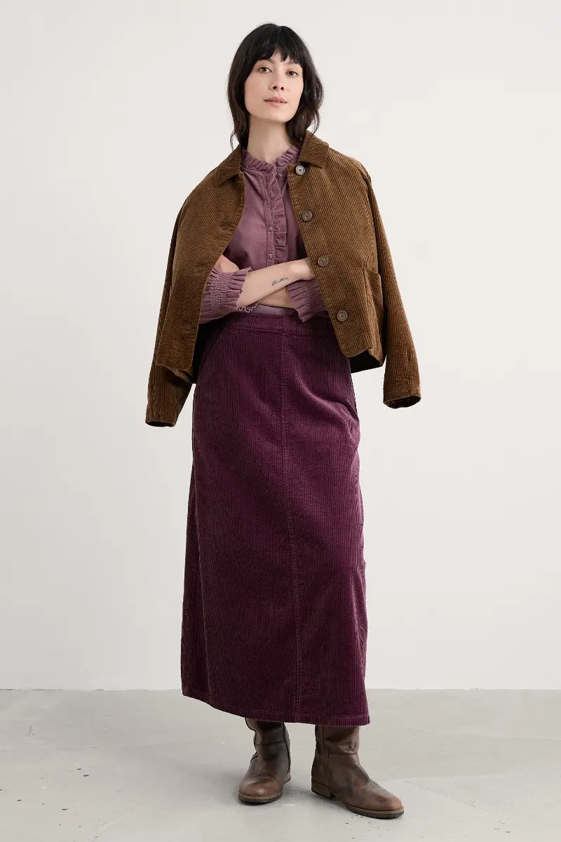 A velvety soft organic cotton cord A-line skirt, in a versatile midi length.