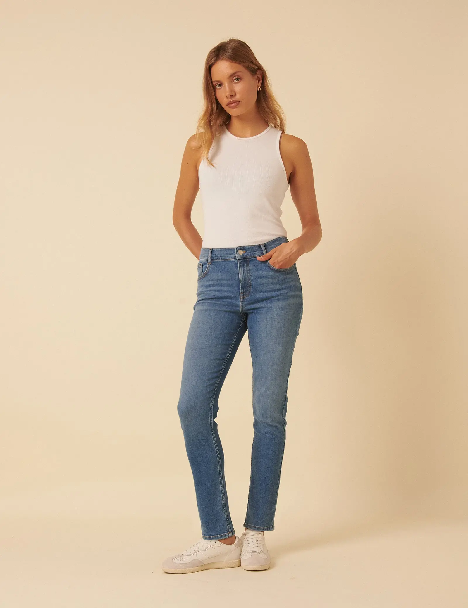 Mid rise Comfort stretch Slim leg Ankle length Belt loops Classic five pocket style Concealed zip fastening with silver-tone NC button Regular inside leg length: 71cm Size tip: we recommend sizing down