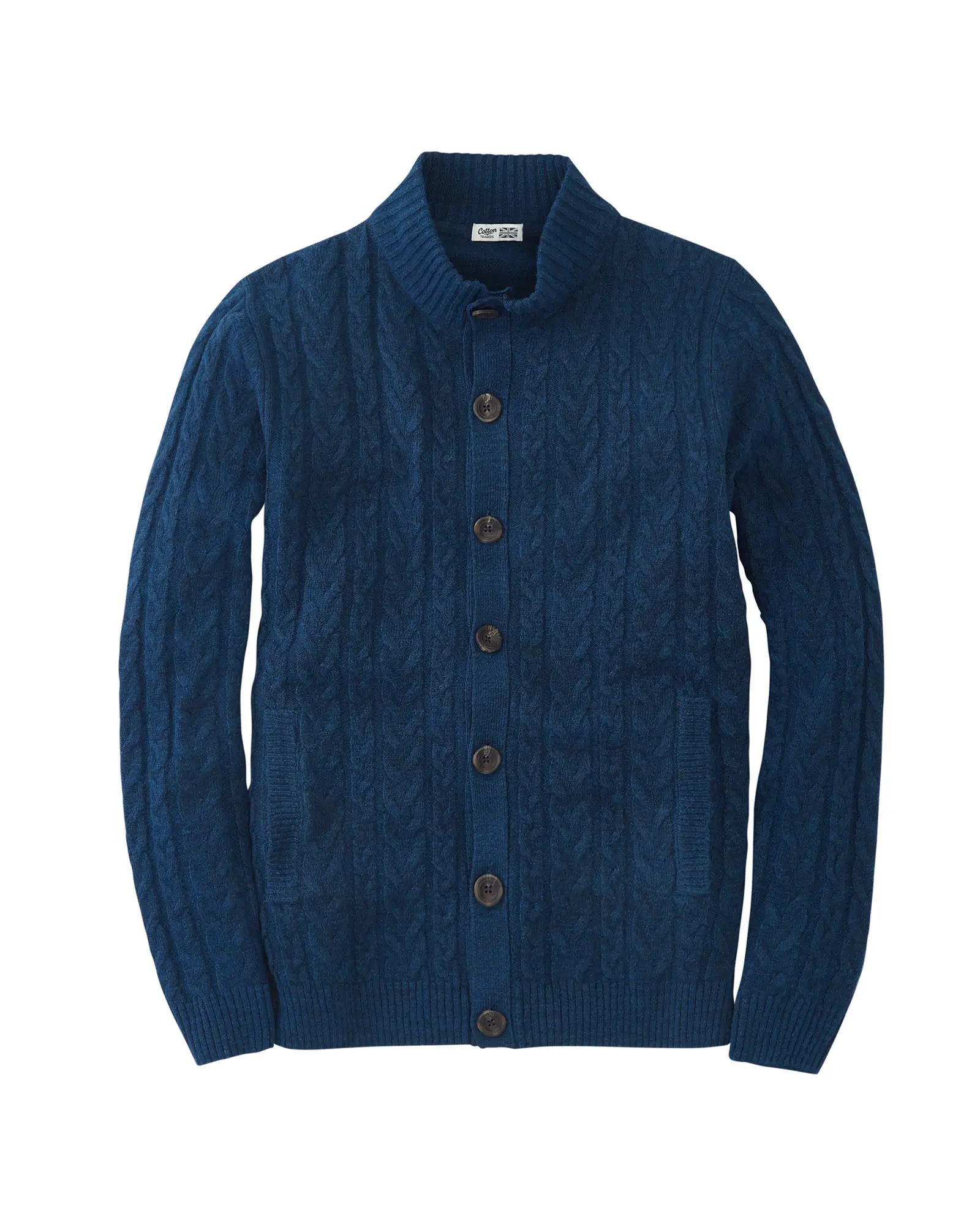Cotton Traders Cable Knit Button Through Cardigan in Blue, Polyamide/Polyester/Acrylic