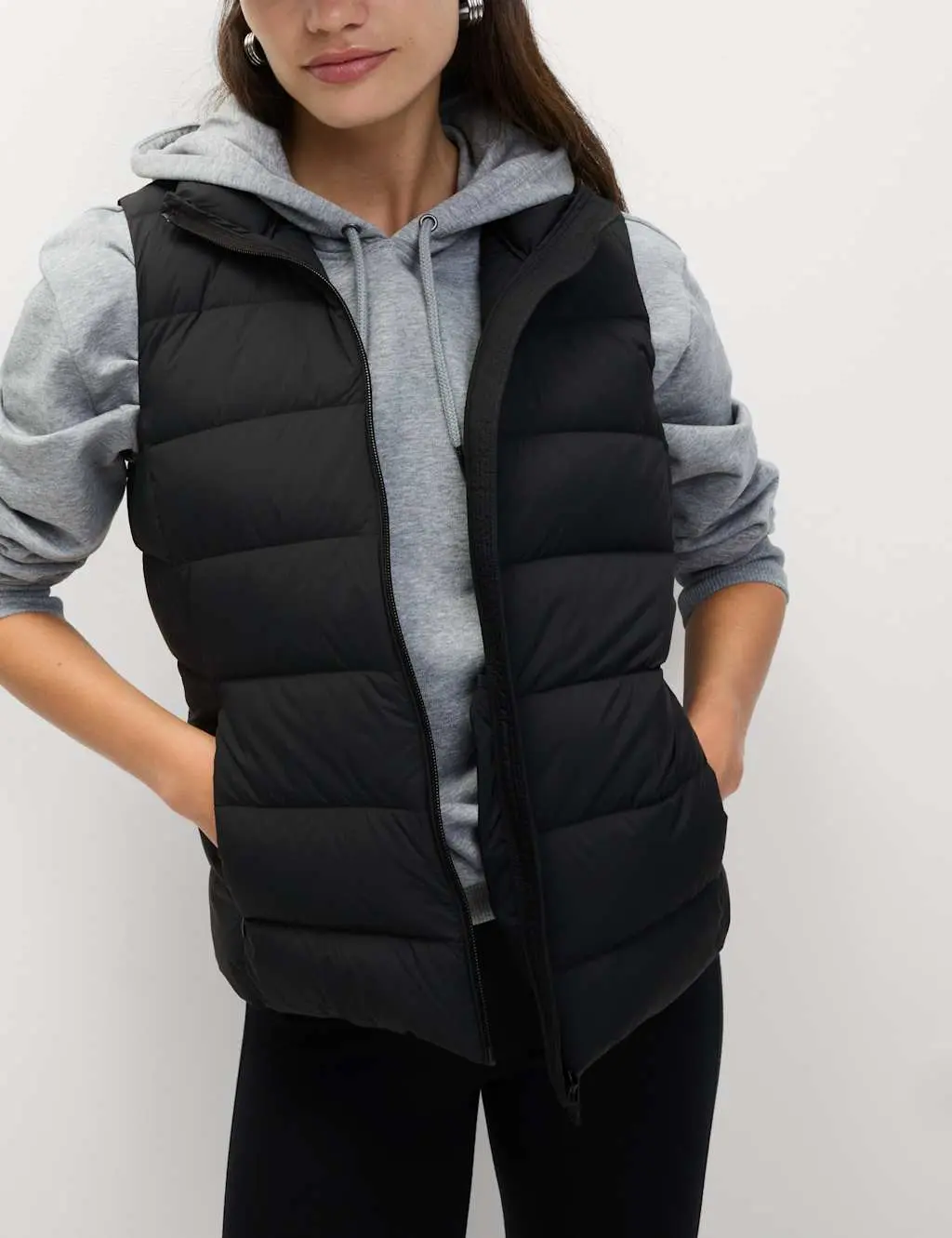 M&S Feather & Down Packaway Funnel Neck Gilet Black