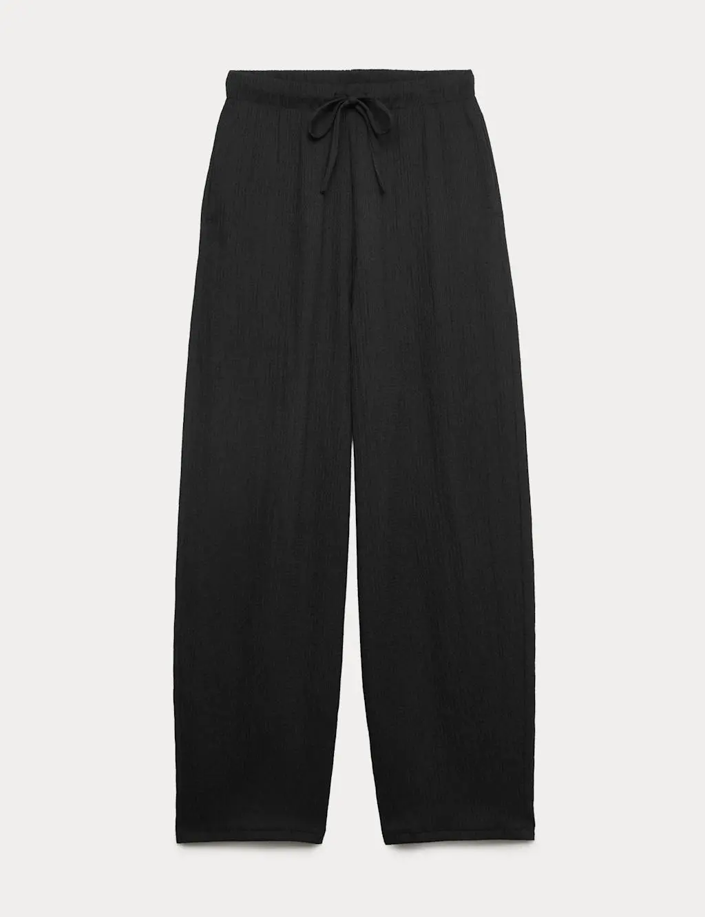 These textured trousers are a stylish option for smart-casual occasions. They're designed with a flattering carrot leg shape and an elasticated drawstring high waist for a comfortable fit. The ankle-grazer length and two side pockets complete the easygoing look. M&S Collection: easy-to-wear wardrobe staples that combine classic and contemporary styles.