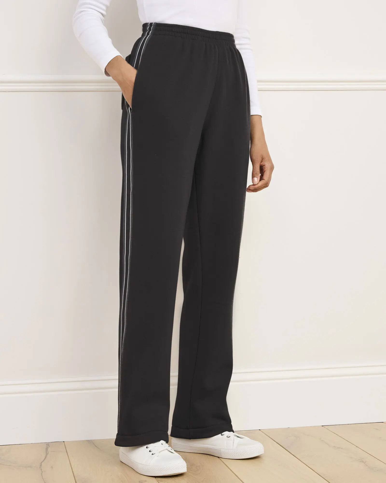 Cotton Traders Side Detail Jog Pants in Black, Cotton/Polyester