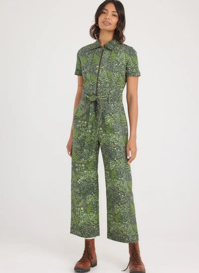Joanie Clothing Mork Leafy Forest Print Short Sleeve Boilersuit