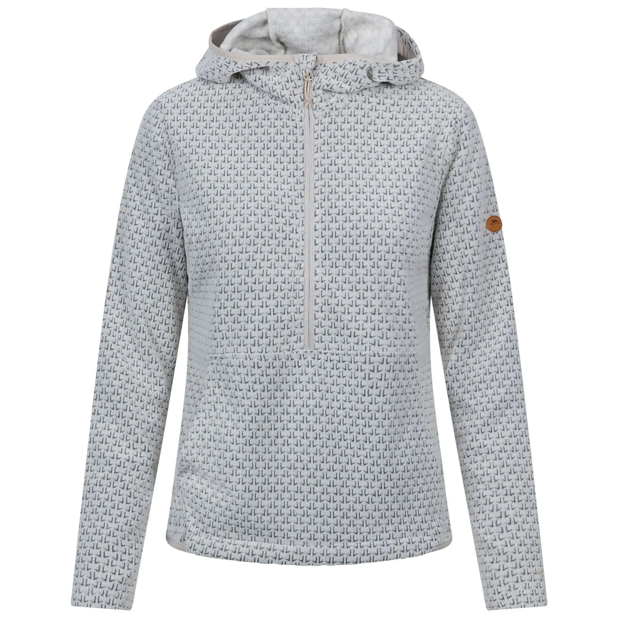100% Polyester. Fabric: Knitted. Design: Badge, Logo, Textured. 200gsm. Fabric Technology: Airtrap, Breathable, Lightweight. Hem: Binded. Hood Features: Grown On Hood, Stretch Binding. Chin Guard. Neckline: Hooded. Sleeve-Type: Long-Sleeved. Pockets: 1 Kangaroo Pocket. Fastening: Half Zip. XS: 32 in. S: 34 in. M: 36 in. L: 38 in. XL: 40 in. XXL: 42 in. | Trespass Women's Metraya Hoodie in Off-White | Size: XS