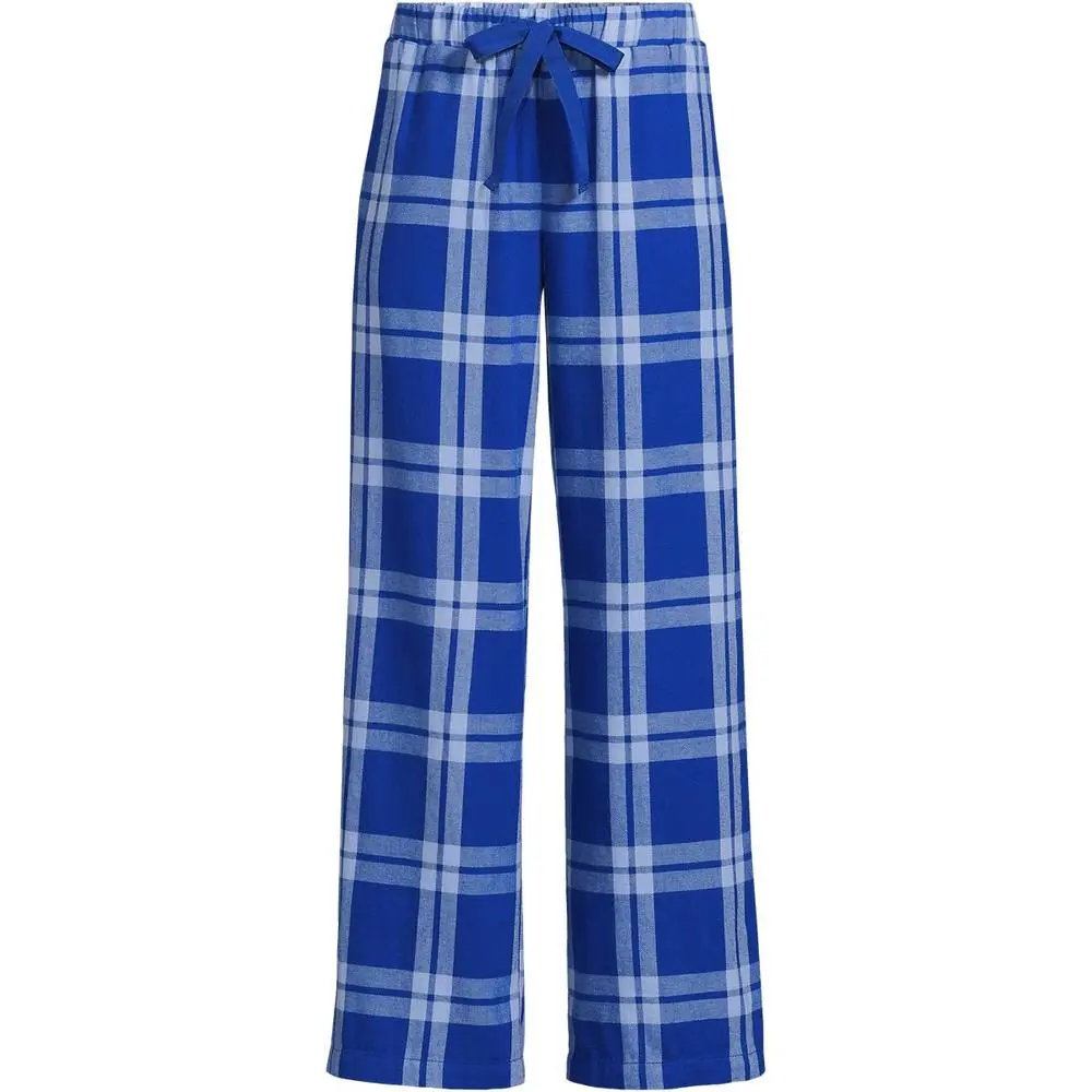 Lands' End Women's Petite Flannel Wide Leg Pyjama Bottoms in Blue