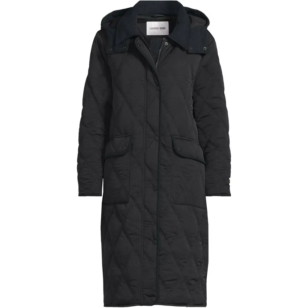 Lands' End Women's FeatherFree Diamond Quilted Hooded Coat in Black