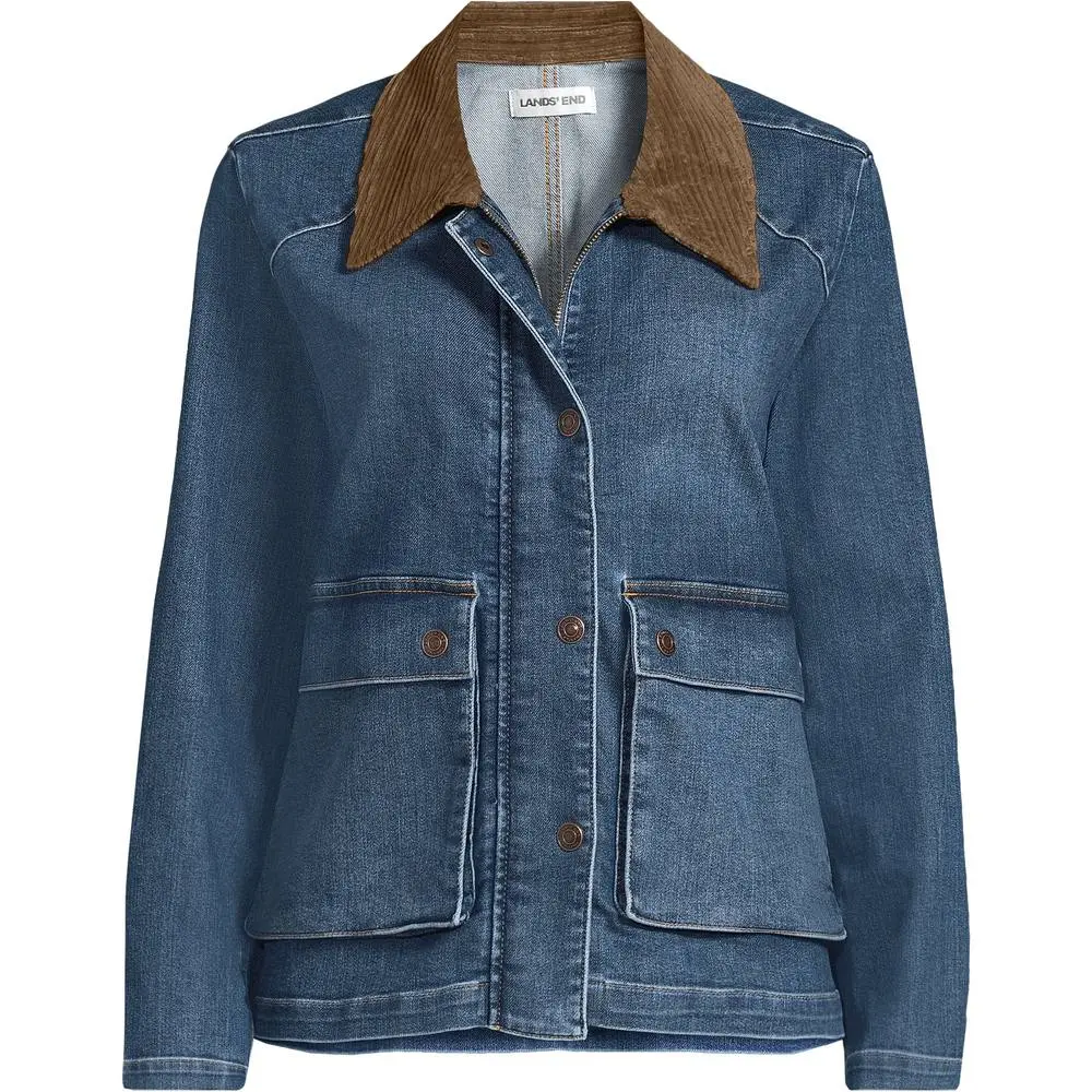 Lands' End Women's Plus Corduroy Collar Denim Jacket in Indigo