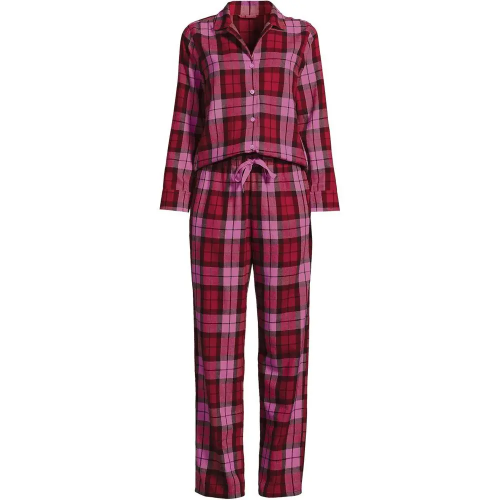 Lands' End Women's Plus Flannel Pyjama Set in Pink