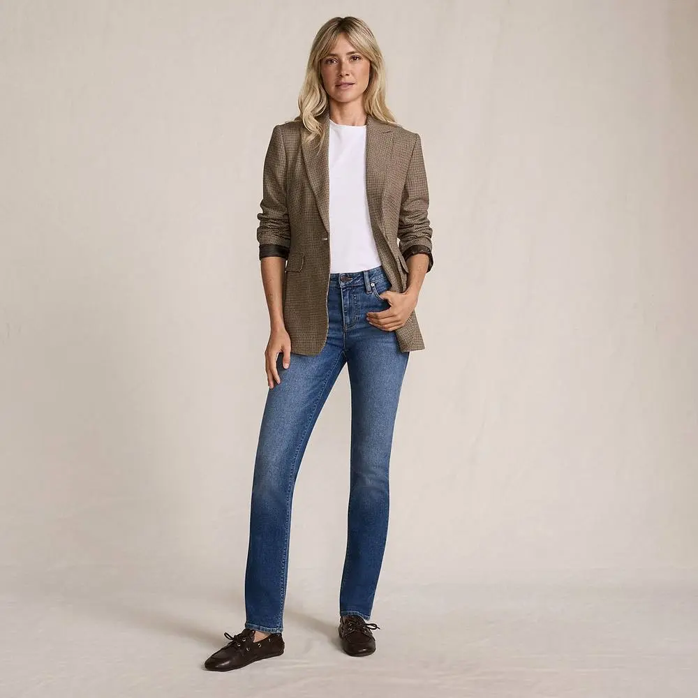 This beautifully tailored checked blazer is a standout addition to your autumn wardrobe. Fully lined for comfort and structure, it features classic detailing and two practical front pockets. Whether paired with tailored trousers for a polished look or dressed down with your favourite jeans, it's a versatile piece you'll reach for again and again. | Lands' End Women's Checked Blazer in Tan | Size: 14