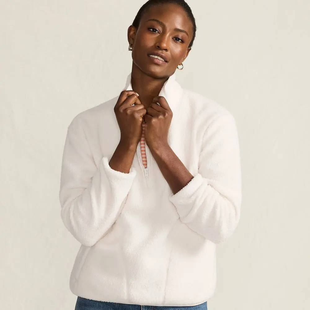 Lands' End Women's Petite Cosy Sherpa Fleece Half Zip Pullover in Ivory