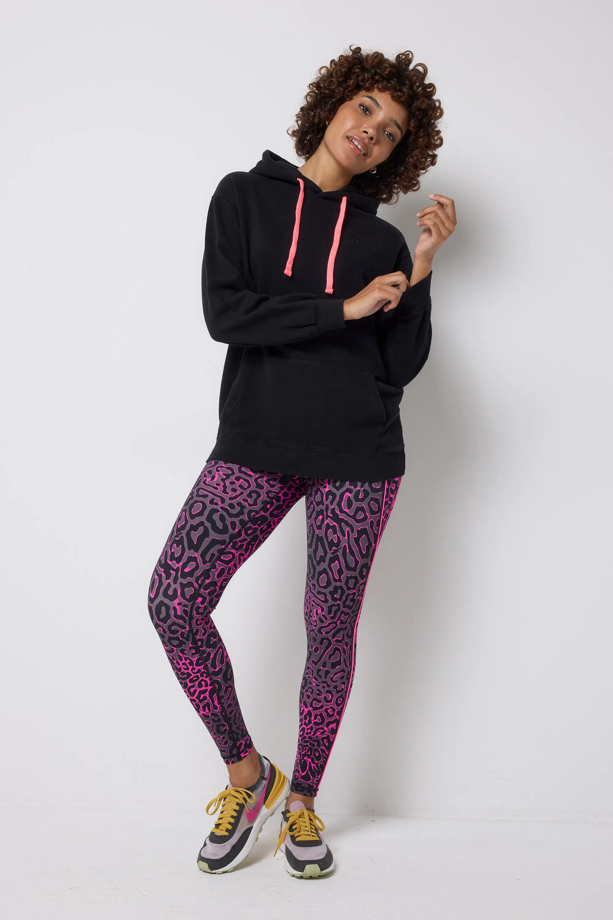 Go from studio to street in prints that perform. Our grey with pink leopard ray and lightning bolt print gym leggings are designed with sculpting four-way stretch fabric and a flattering high-rise waistband. Crafted to cinch and lift in all the right places, these leggings are set to be the show-stopping heroes of your activewear wardrobe. High waisted with a wide waistband for support Full Length Sculpting 4 way stretch fabric Flattering panelling design at sides Concealed zip pocket at back waistband Non-see through and squat proof Signature neon pink embroidered lightning bolt on the top hip Model is Size 8 Height 5'7.5" Wearing a size 8 Shop more activewear.