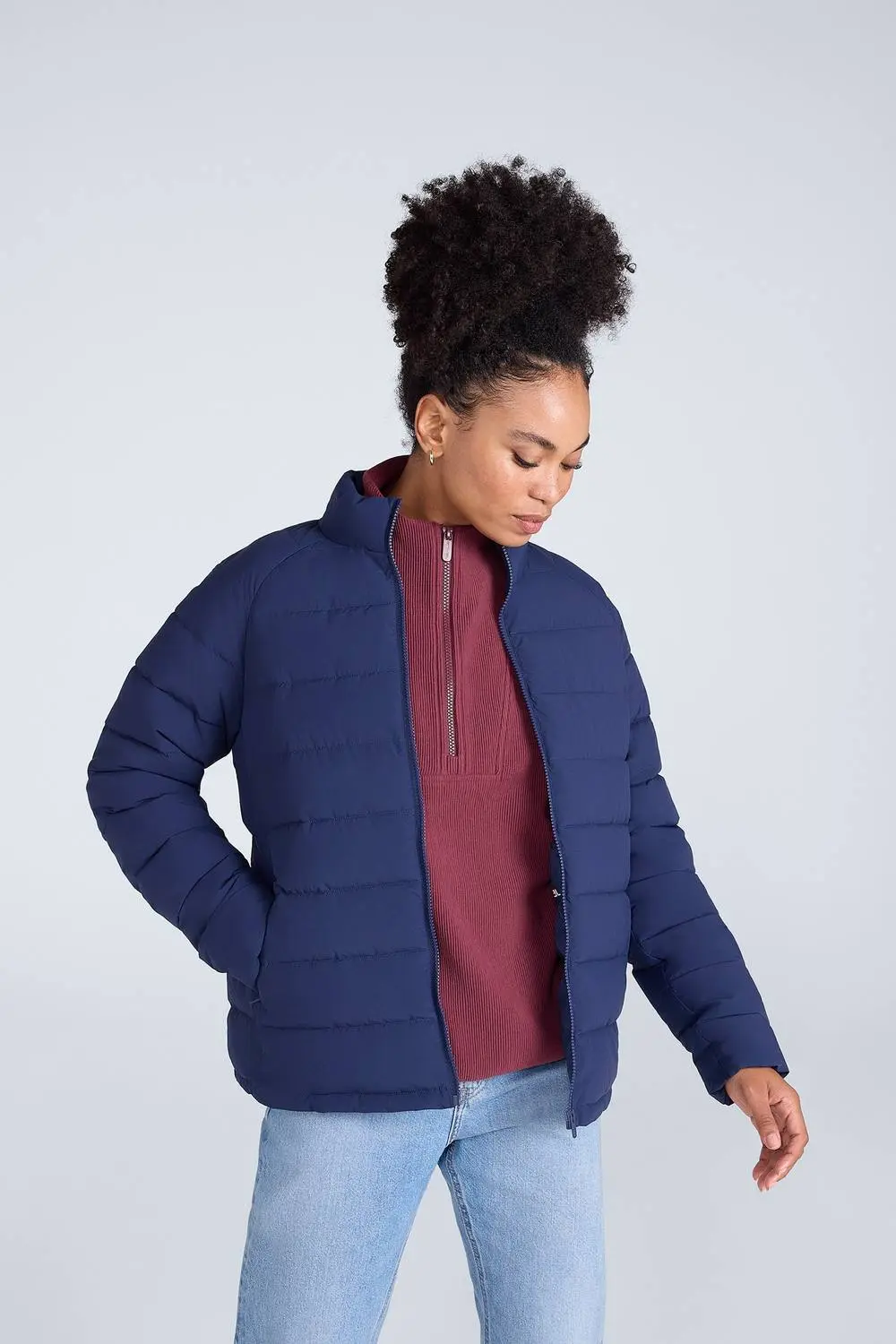 Animal Women's 'Light Cosi' Lightweight Full Zip Warm Padded Outdoor Hoodless Jacket in Navy
