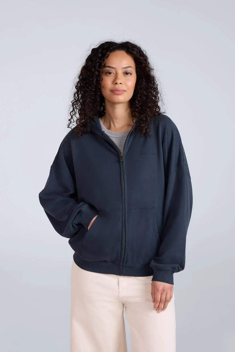 The Idol Womens Zip Through Hoodie seamlessly blends the brands heritage with a modern, urban twist. Crafted from 100% brushback cotton, its as soft and cosy as your favourite beach jumper, but designed for the city. Featuring a full zip and handy side pockets, the Idol Hoodie offers effortless warmth and comfort wherever your day leads. (Ref: 057732) | Animal Women's 'Idol' Warm Comfortable Casual 100% Cotton Logo Zip Through Hoodie in Dark Blue | Size: 6