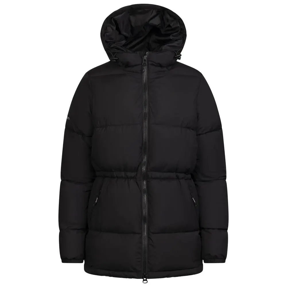 Shell: Polyester, TPU Membrane. Filling Material: 100% Polyester. Lining Material: 100% Polyester. Fabric: Ripstop. Design: Badge, Logo, Plain, Quilted. Fabric Technology: Lightweight. Cuff: Elasticated. Fake Down Insulation, Stitched Baffles. Neckline: Hooded. Sleeve-Type: Long-Sleeved. Hood Features: Grown On Hood, Toggle Adjuster. Pockets: 2 Front Pockets, Zip. Fastening: Two Way Zip. Hem: Dipped. Waistline: Internal Drawcord. XS: 32 in. S: 34 in. M: 36 in. L: 38 in. XL: 40 in. XXL: 42 in. 3XL: 44 in. | Trespass Women's Pinchi Waterproof Jacket in Black | Size: Small