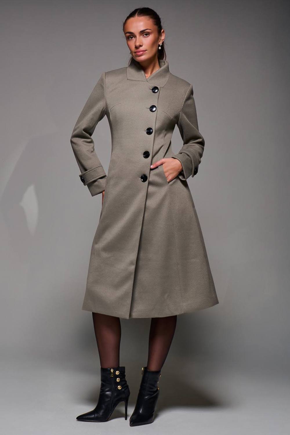 Jolie Moi Women's Asymmetric Button Detail Fit & Flare Coat in Light Khaki