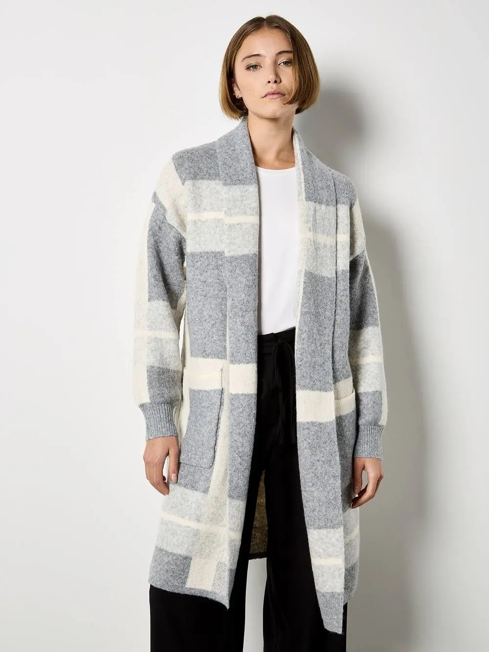 Apricot Women's Stripe Colour Block Long Cardigan in Light Grey