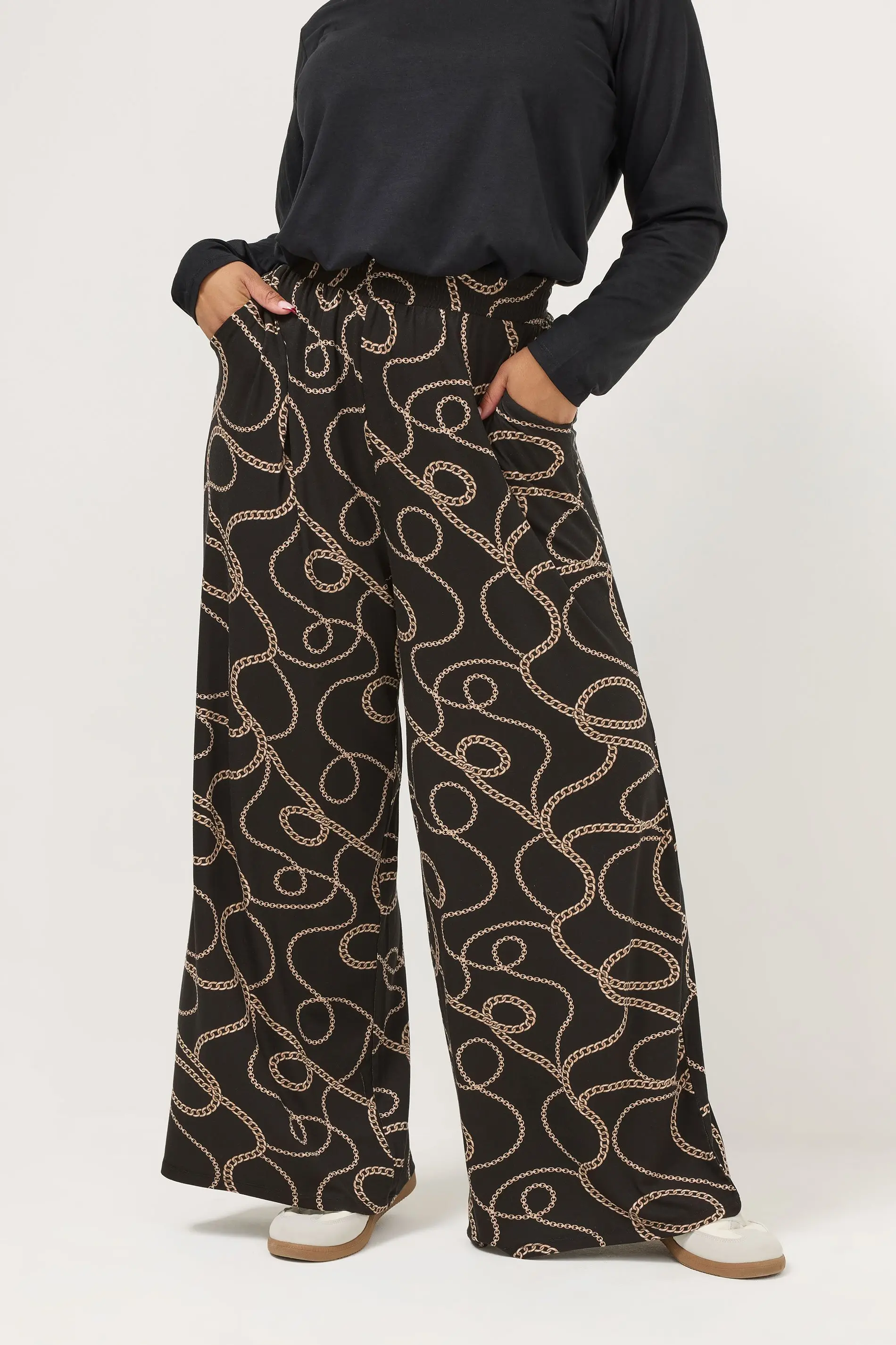 Yours Plus Size Black Chain Print Wide Leg Trousers Size 30-32