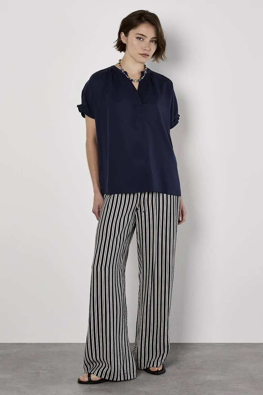 Apricot Women's Wide Leg Stripe Trousers in Navy