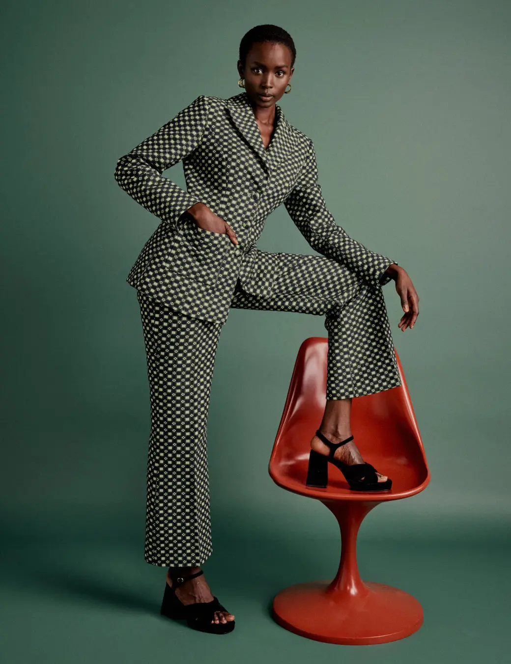 NC x Lisou Black and Lime Green Jacquard Checkerboard Tailored Trousers