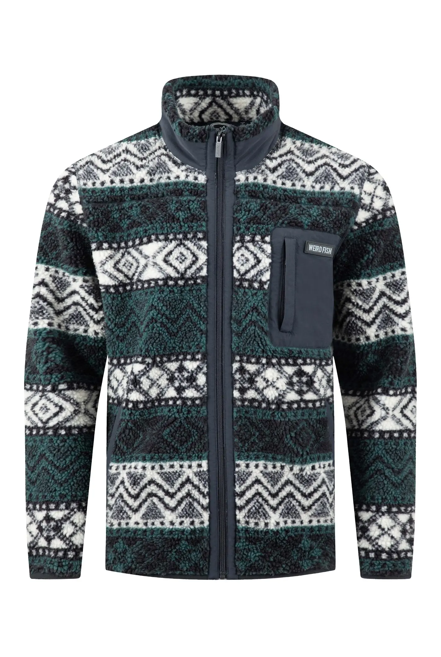 Weird Fish Lucian Full Zip Jacquard Borg Fleece Navy