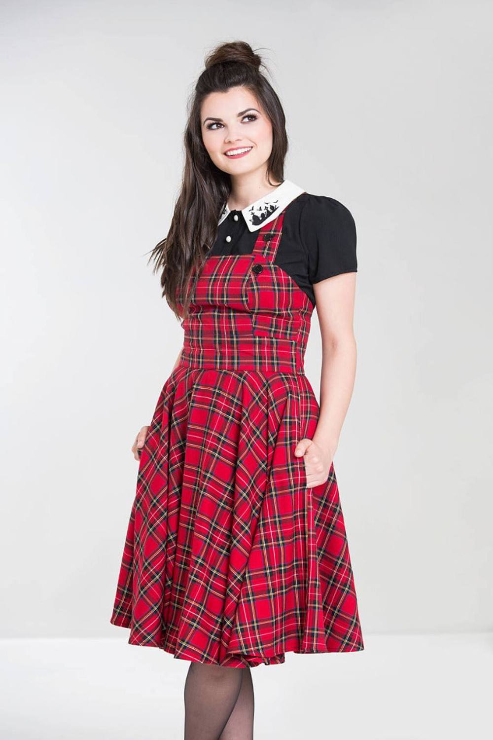 Hell Bunny Women's Irvine Tartan Pinafore Midi Dress in Red
