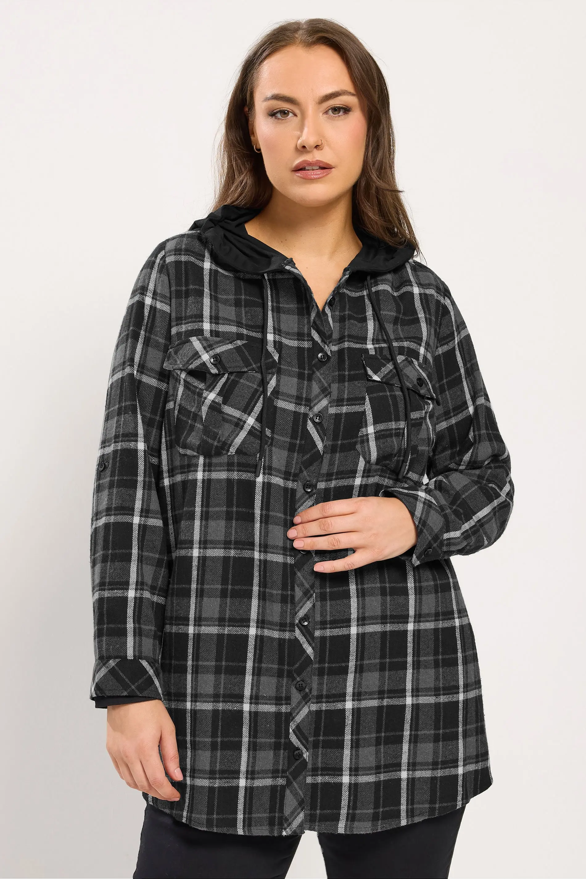 Yours Plus Size Grey Hooded Check Shirt Size 34-36