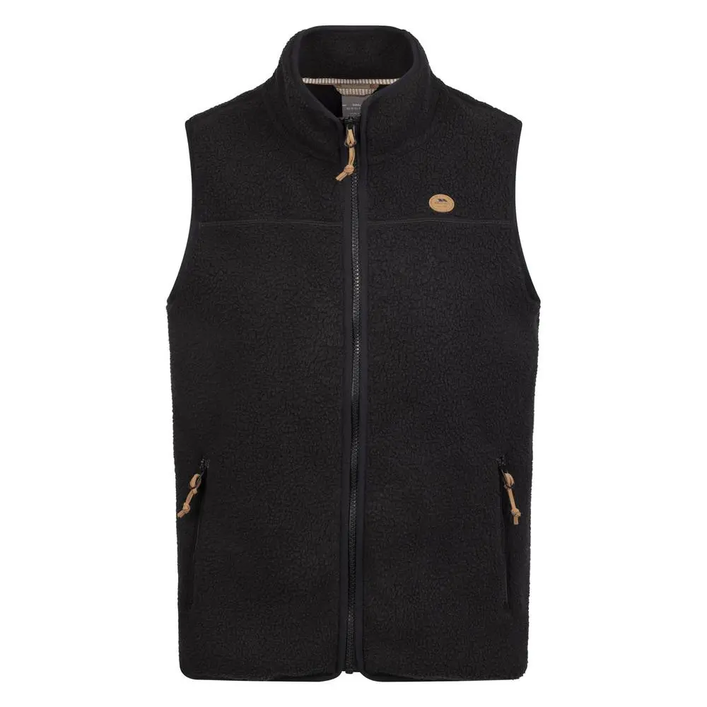 100% Polyester. Fabric: Brushed Back, Knitted, Sherpa Fleece. Design: Logo. Fabric Technology: AT300. Airtrap, Coverstitch Detail, Stretch Binding. Sleeve-Type: Sleeveless. Neckline: Standing Collar. Pockets: 2 Side Pockets, Zip. Fastening: Full Zip. XXS: 30 in. XS: 32 in. S: 34 in. M: 36 in. L: 38 in. XL: 40 in. XXL: 42 in. 3XL: 44 in. | Trespass Women's Notion Fleece AT300 Gilet in Black | Size: Small